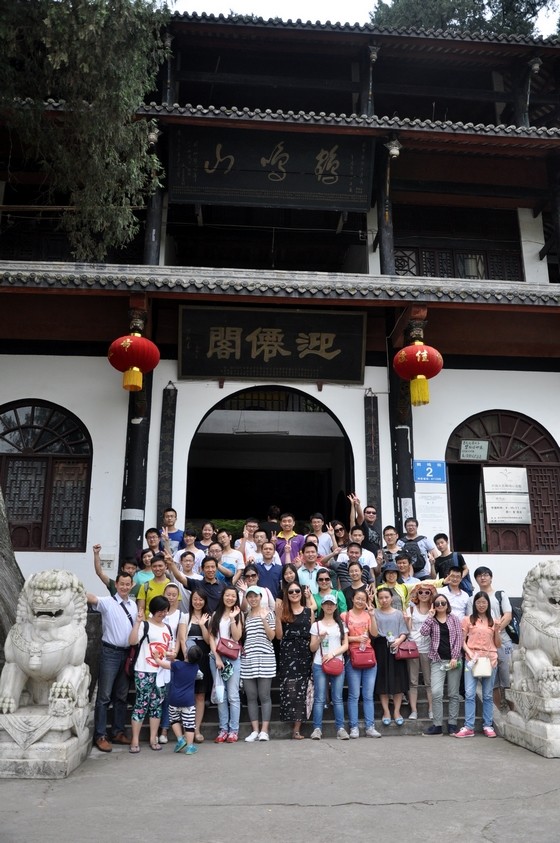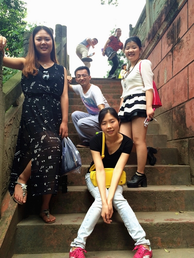 一個閑適上午,就這樣悄然而去,大伙兒帶著勝利的果實,滿載而歸。簡單的午餐后,休憩片刻,我們開始了今天的登山之旅——鶴鳴山。鶴鳴山是舉世公認的中國道教發源地,世界道教的朝圣地,被稱為“道國仙都”、“道教祖庭”。這里山勢雄偉、林木繁茂,雙澗環抱,形如展翅欲飛的立鶴。從山麓起有石級數千,拾級而上直達山巔,大家成群結伴,激動的向著山頂最高處前行。登山途中,大家相互間拍照留念,呼吸著新鮮空氣,身體的疲憊已經被大自然帶來的清新和愜意所代替。置身大山的懷抱,感受濃濃的道教氣息,大伙兒都沉浸在這靜謐的山水之間,盡情享受著旅行中的樂趣。