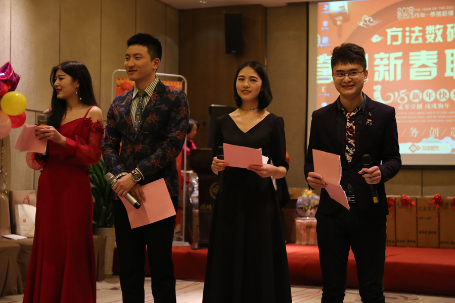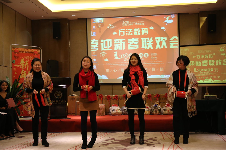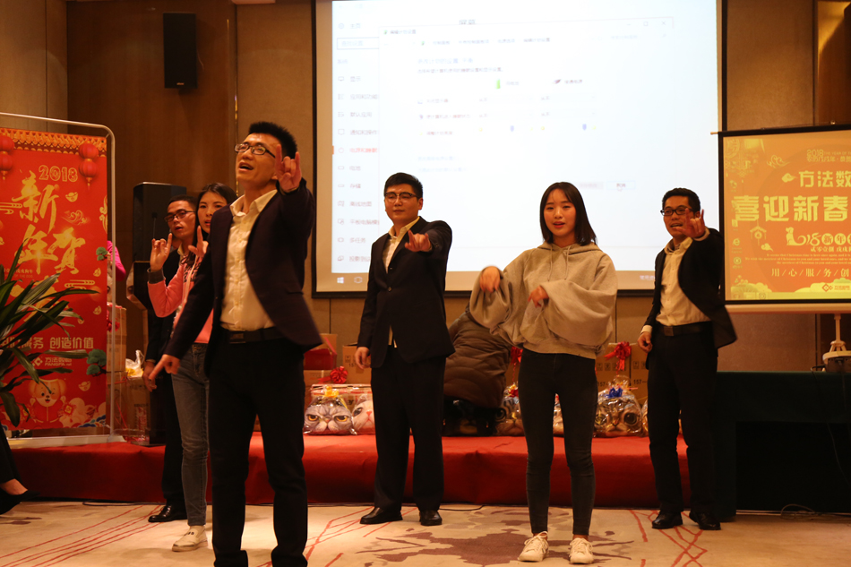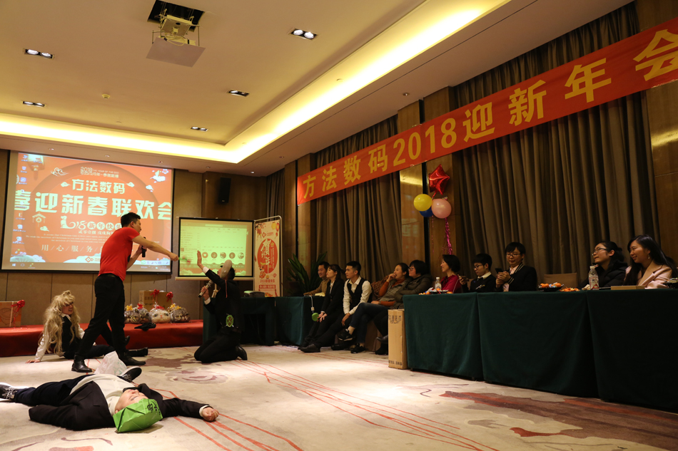 中午的午餐,大家推杯換盞,開懷暢飲,共話新年。伴隨著歡快的歌舞,2018年方法數碼迎新聯歡會也正式拉開了序幕。多才多藝的方法人,給我們展現了一場場別開生面的表演,歌曲、舞蹈、小品等形式多樣的文藝節目,場場都獲得滿堂喝彩,掌聲不斷。
